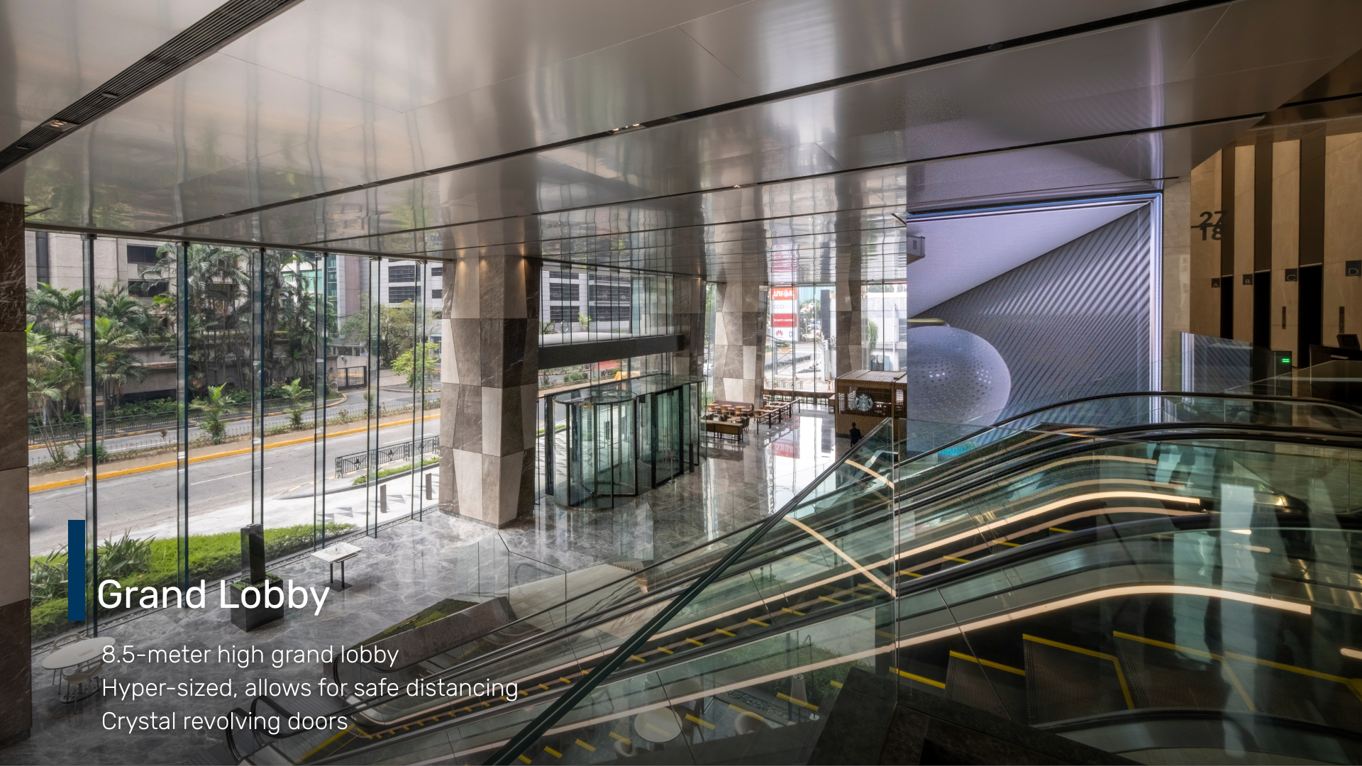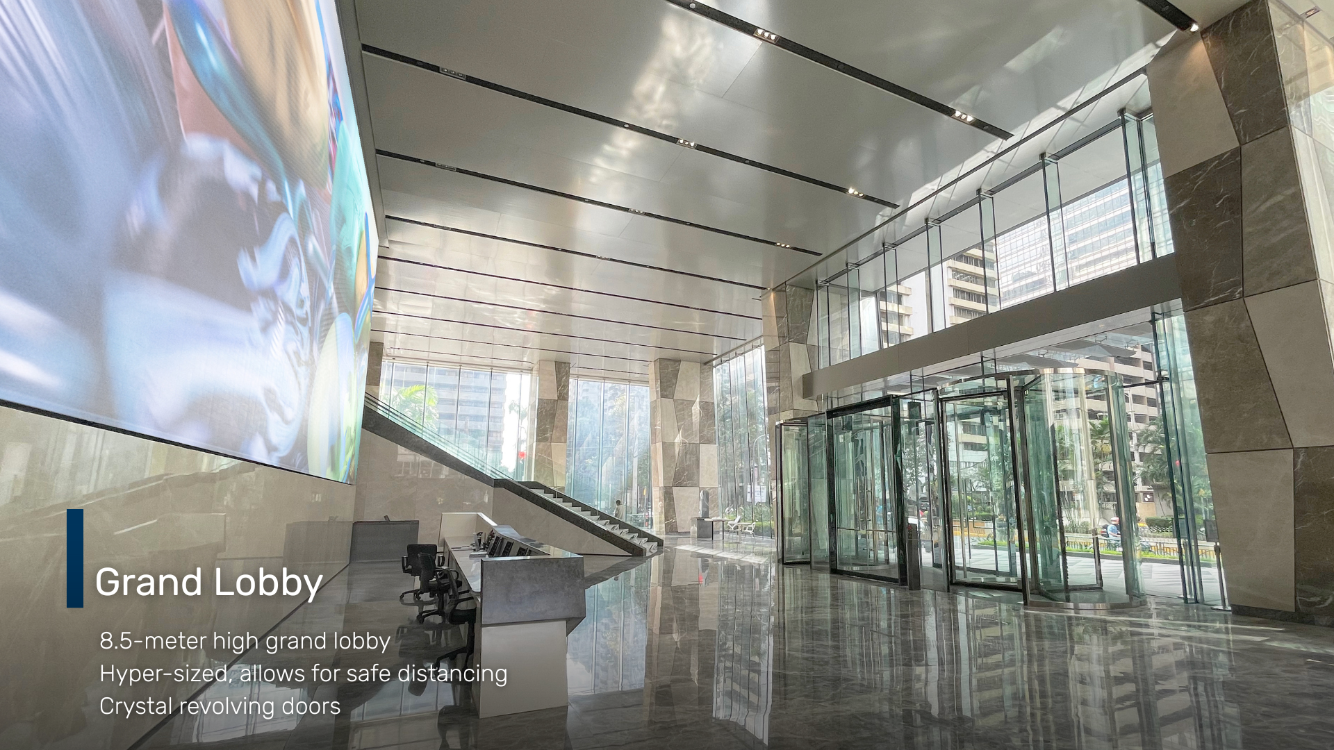 The office building will house a substantial 1,500 sqm rentable square meters of retail spaces while receiving guests and tenants in a triple-story high grand lobby. The tower will feature 23 high-speed lifts which is catered to four building zones, including low to mid zone areas housing BPO (Business Process Outsourcing) offices, while the high zone areas is dedicated to corporate offices and other building amenities. GLAS also features ample parking areas within bicycle parking spaces to encourage low carbon emission means of transportation. Each floor embraces floor plates measuring approximately 2,000 rentable square meters entirely free of interior columns on a 4-meter high ceiling space, matched with unobstructed corner views. The column-free design will allow flexibility and efficiency of interior programming to both open space and private office layouts.