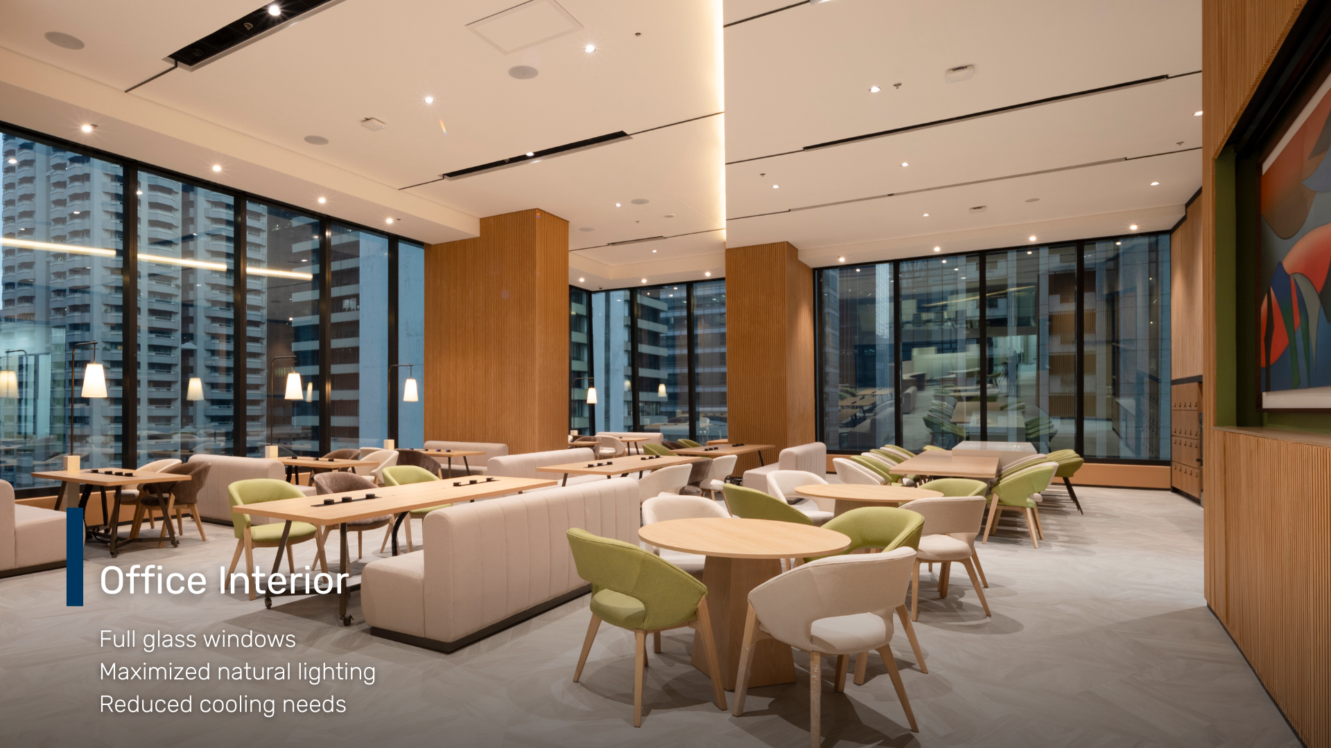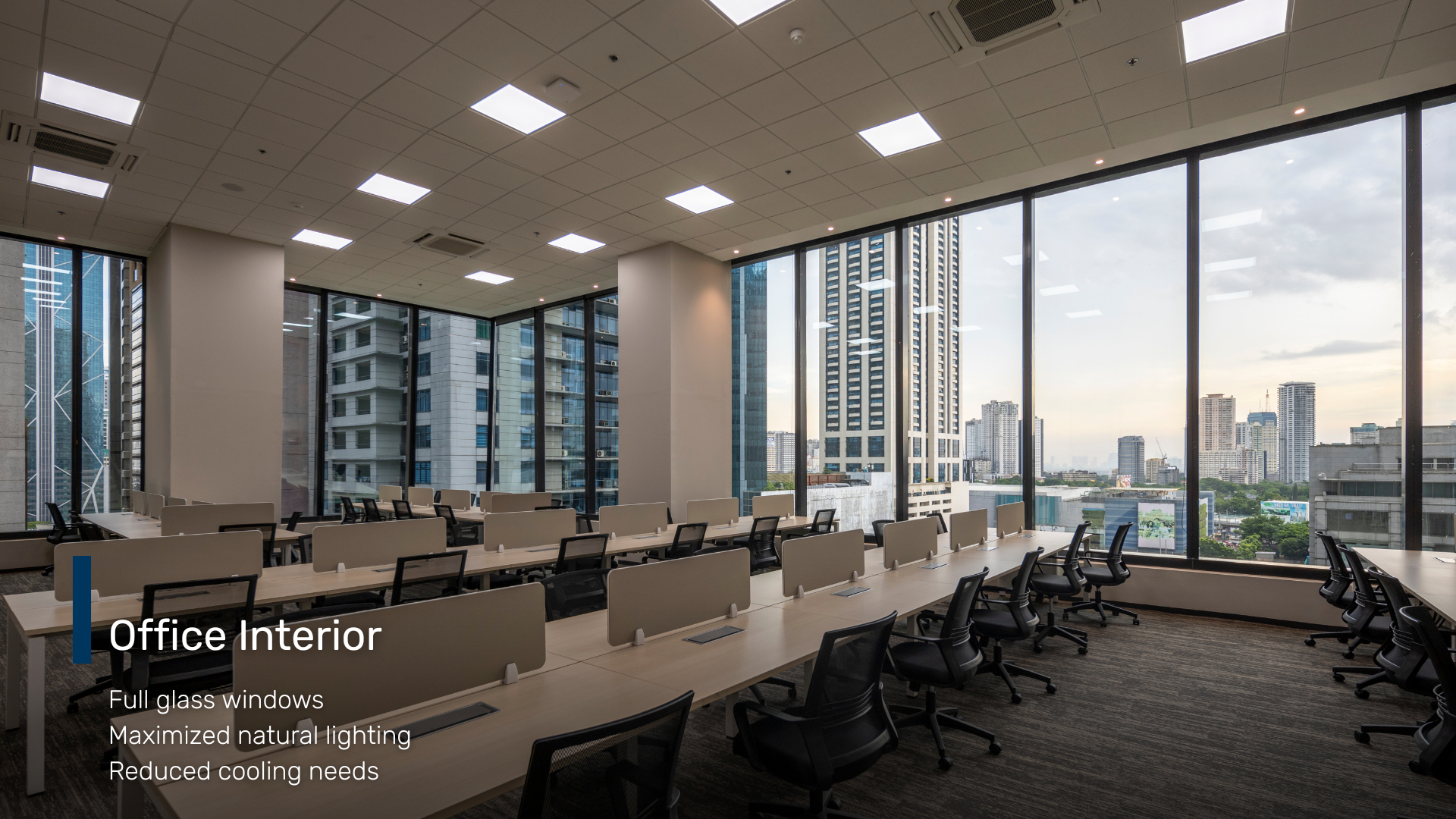 Glas is expected to go beyond a LEED® Platinum designation to encourage tenants and visitors to support sustainable practices in their own way. The building features a number of sustainable and environmentally-friendly elements including double-glazed, triple low-e high-performing glass windows, the first of its kind in the entire Philippines. The floor-to-ceiling window heights will allow natural light to penetrate throughout the floor while blocking off heat, which will substantially reduce energy requirements and costs. Together with ASYA’s in-house specialist teams, Glas is designed with the water resource properly utilized through a highly-efficient rainwater harvesting system ensuring clean and safe non-potable water supply used for servicing purposes, housekeeping and landscaping maintenance.
